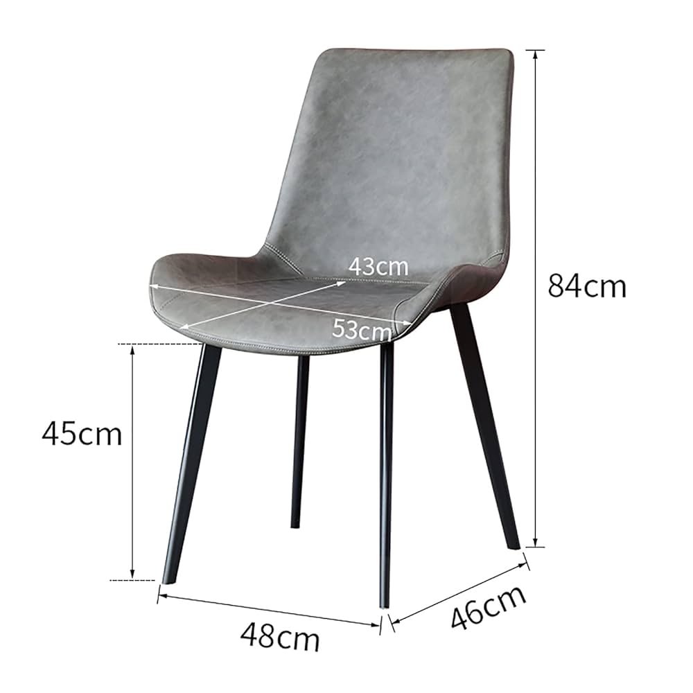 Chaises modernes au design épuré, adaptées à une salle à manger, un bureau ou un espace de travail contemporain. Rembourrées et revêtues d’un similicuir lisse avec quatre pieds fins et fuselés en métal noir.